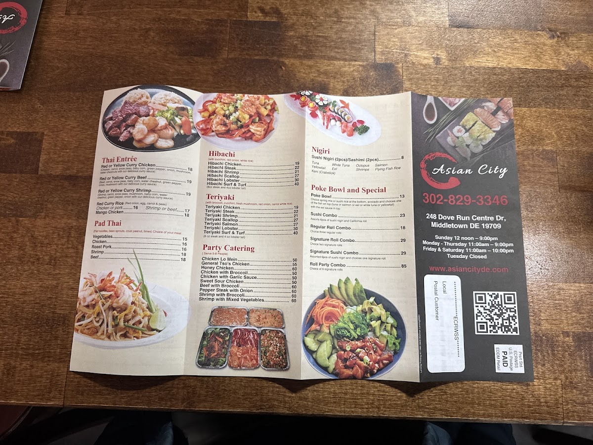 Asian City in Middletown, DE, brings an exquisite blend of Chinese and Japanese flavors, boasting a diverse menu that excites every palate. Their signature sushi rolls, like the Lovely Fried Roll with tuna, salmon, and red snapper tempura, and the creamy Caterpillar Roll topped with avocado and spicy mayo, showcase masterful craftsmanship. For rice and noodle lovers, dishes such as chicken lo mein and beef Szechuan provide rich, bold flavors that delight the senses. Soups like hot & sour and wonton deliver comforting warmth, perfect for any meal. Reviews consistently praise the freshness of the sashimi, the crispy yet tender pan-fried dumplings, and the generous, well-balanced portions. Whether craving fresh sushi, hearty entrées, or comforting soups, Asian City offers a well-rounded dining experience with impeccable service, making it a must-visit destination for Asian cuisine enthusiasts.